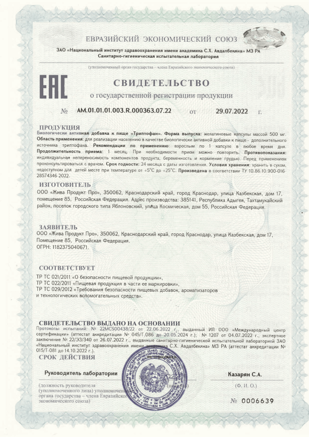 является источником образования в головном мозге серотонина, мелатонина, дофамина, играющих важную роль в регуляции поведения, настроения, когнитивных функций и сна